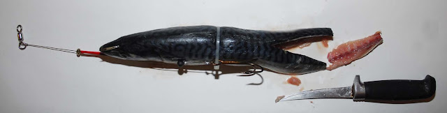 удаляем часть хребта с хвостом и получаем две соблазнительно болтающихся полоски филейки, кровь из которых привлекает хищника.