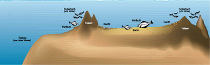 Третий Совет: Места ловли палтуса: песчаное дно. Это может быть мелкое место с глубокой впадиной, где высота меняется с приливами-отливами. Это также может быть место с плоским песчаным дном. Когда я ловлю рыбу на этих платформах, то приходится искать вариации исходя из состояния дна.